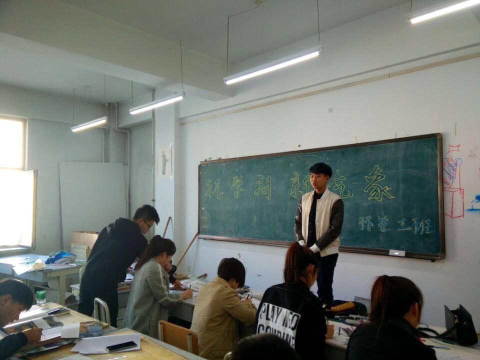 班会的开始丁富禹同学首先对环境艺术设计三班上学期的表现做出了总结,2014年9月,环境艺术设计三班的同学来自四面八方带着共同的梦想,带着一样的目标,带着成功的喜悦,相聚在unibet中文。上学期大家从懵懵懂的高中生,步入大学这座象牙塔,到后期经过全班同学的共同努力成功参加了公司的迎新晚会,每一步都展现出每一位平凡同学不平凡的光彩。