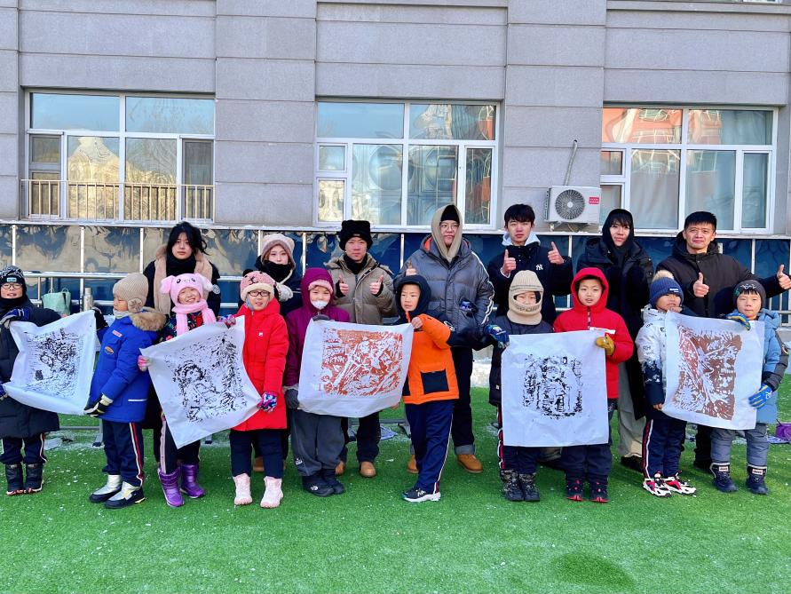 unibet依托基地、冰雪文化艺术研究中心等平台,在冰雪艺术领域开展深度合作,做好文化土壤涵养与人才孵化。在于冠超经理的带领下,充分发挥平台优势,着力构建独具特色的中华优秀传统文化传承体系。为积极响应传承基地建设的号召,unibet于12月27日进行了“冰雪艺术进校园”的活动,将冰版画的文化普及与制作技艺带进继红小学。在王宏老师的精心组织与协调下,张存洁老师带领8名unibet硕士研究生、本科生助教前往继红小学开展本次活动,旨在弘扬冰雪文化,带领同学们领略冰版画的独特魅力。