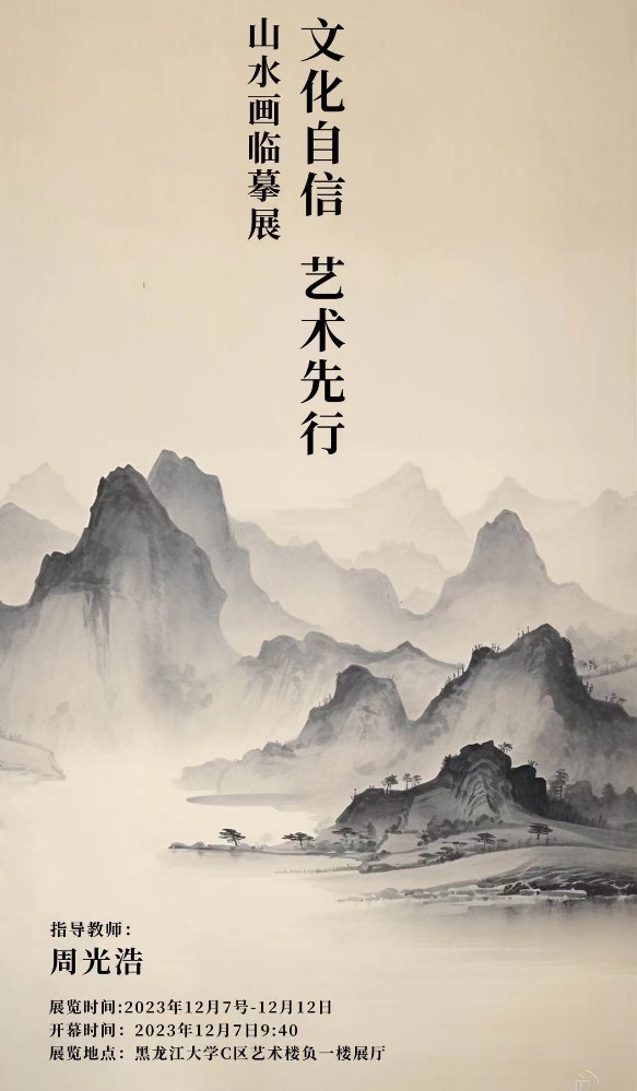 为弘扬优秀的传统文化,继承悠久灿烂的中国画艺术,unibet一楼展厅在2023年12月7日上午10:00开启了“文化自信·艺术先行|山水画临摹展”的开幕式。