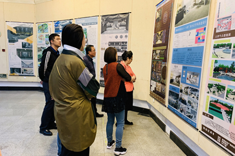 5月17日上午, 公司党委副书记蒋晶洁来到unibet,参观了正在举办的2019届环境艺术系本科生毕业作品展。公司党总支书记钟会、副经理余雁、副书记刘春明和部分环境艺术系教师一同参观了展览。