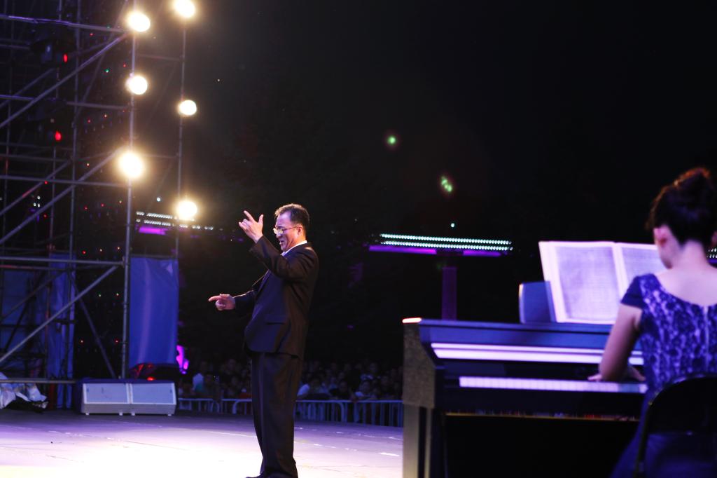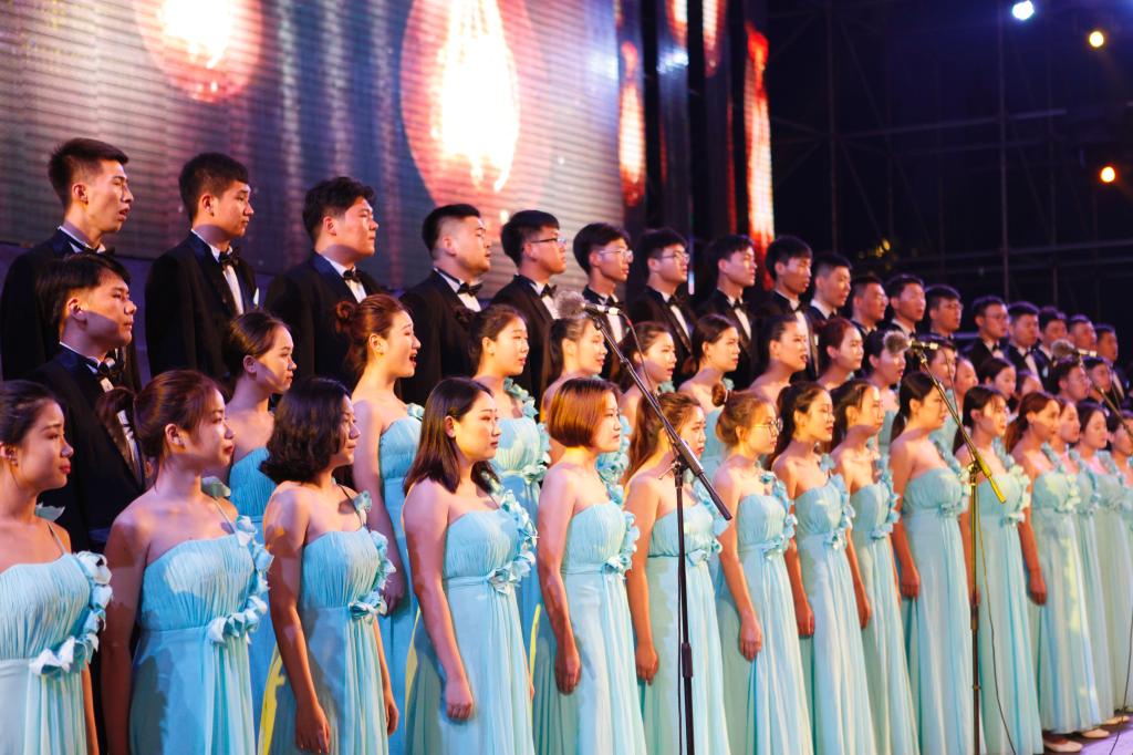 在本场音乐会中,电音弦乐重奏、混声合唱、二胡齐奏、古筝独奏、男女高音独唱、男中音独唱、男声四重唱、女声表演唱、舞蹈、双小提琴与器乐合奏等等节目依次精彩出场。现场掌声如潮,观众们热情高涨,最后全场节目在曲凯老师指挥的合唱《迎风飘扬的旗》与《岁月如歌》的歌声中精彩落幕。