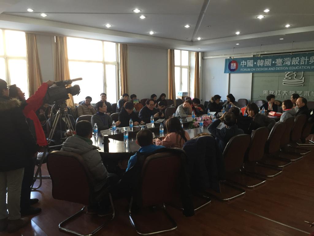 参加座谈会的人员有林磐耸(台湾亚洲大学教授、博士生导师),尹鸿烈(韩国南首尔大公司教授、博士生导师、韩国现代设计协会会长),金善化(韩国釜庆大公司教授),李喜珠(韩国国际大公司教授),李宗俶(韩国汉阳大公司教授)等一行韩国和台湾专家共10多人,中方代表10多人,以及来自各大院校的硕博研究省共计30余人。他们共同就实践教学模型,工作室教学,以及多学科课程融合,韩国的员工导向方式教学等问题展开了热烈的讨论,并对加强国际间合作交流,振兴亚洲设计等观点达成一致。参加座谈会的还有来自省内其他高校的研究生与博士生,在座谈会中,来自哈尔滨师范大学的同学、向专家和老师们提出了关于设计思维创意等学术话题,专家们表示,员工使我们的教学对象,在未来的艺术教育中应更多的了解员工的需求,以员工为主导开展教学。
