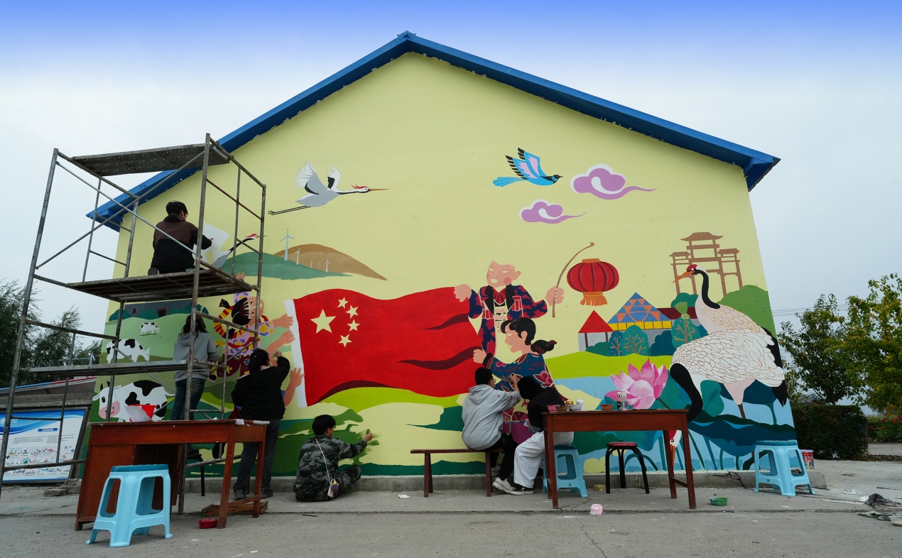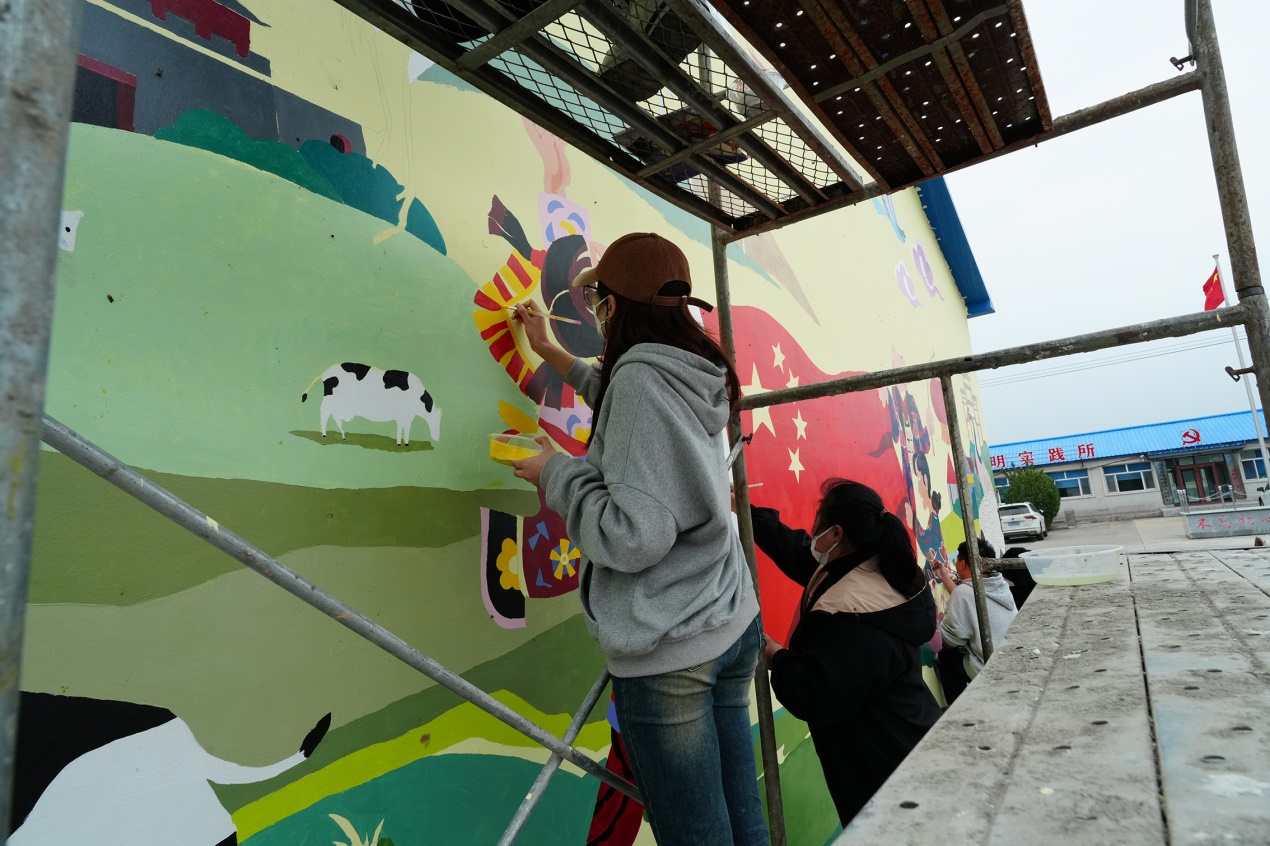 通过精心创意和艰苦创作,为乡村文明建设绘制了一幅精美的彩绘壁画,为国庆献礼。壁画围绕着“喜迎国庆、美丽乡村、产业振兴、蒲峪古城”等主题元素,生动形象,富有浓郁的克东地方特色,展现了unibet中文学子们朝气蓬勃、积极向上的精神面貌。艺术墙绘吸引众多村民和县内青年们驻足拍照,已然成为蒲峪路镇光辉村新兴的打卡地。