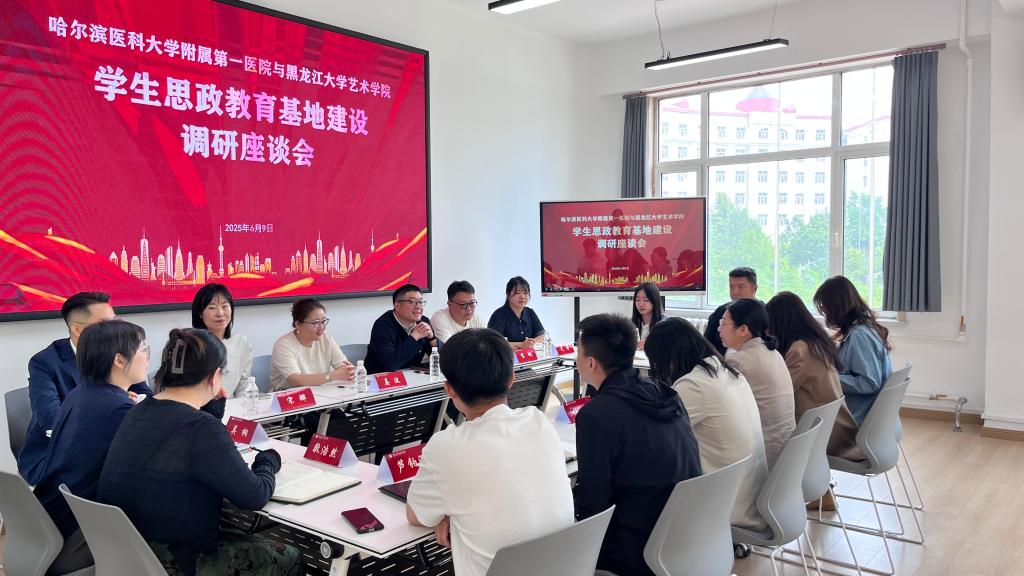 6月9日,unibet在艺术楼会议室与哈尔滨医科大学附属第一医院开展员工思政教育基地建设调研座谈会。公司党委副书记朱军、哈尔滨医科大学附属第一医院党委副书记迟秋君共同主持座谈会,双方公司辅导员代表参加座谈。