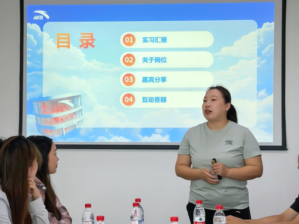在嘉宾分享环节,高向宝总监充分肯定了员工们在实习期间克服困难、创下单店短期高销售额的优异表现;汪淼总监阐述了安踏的企业使命与文化价值观,鼓励员工选择与个人价值理念相契合的发展平台;李亚洁老师表示,此次实习有效帮助员工跳出课堂局限、接触真实职场,实现了从理论到实践的重要跨越,并期待与安踏进一步拓展合作深度与广度。